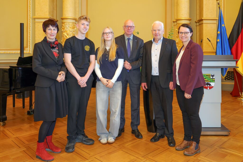 Am 17.09.2025 setzten Anna Beck, Jonas Broutschek, Jari Kreuzmann, Marie Martin und Wilhelmine Schrader unter der Leitung von Frau Sander ein Zeichen, indem sie am Landestag des Schulnetzwerkes Schule ohne Rassismus – Schule mit Courage in Magdeburg teilnahmen.